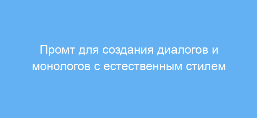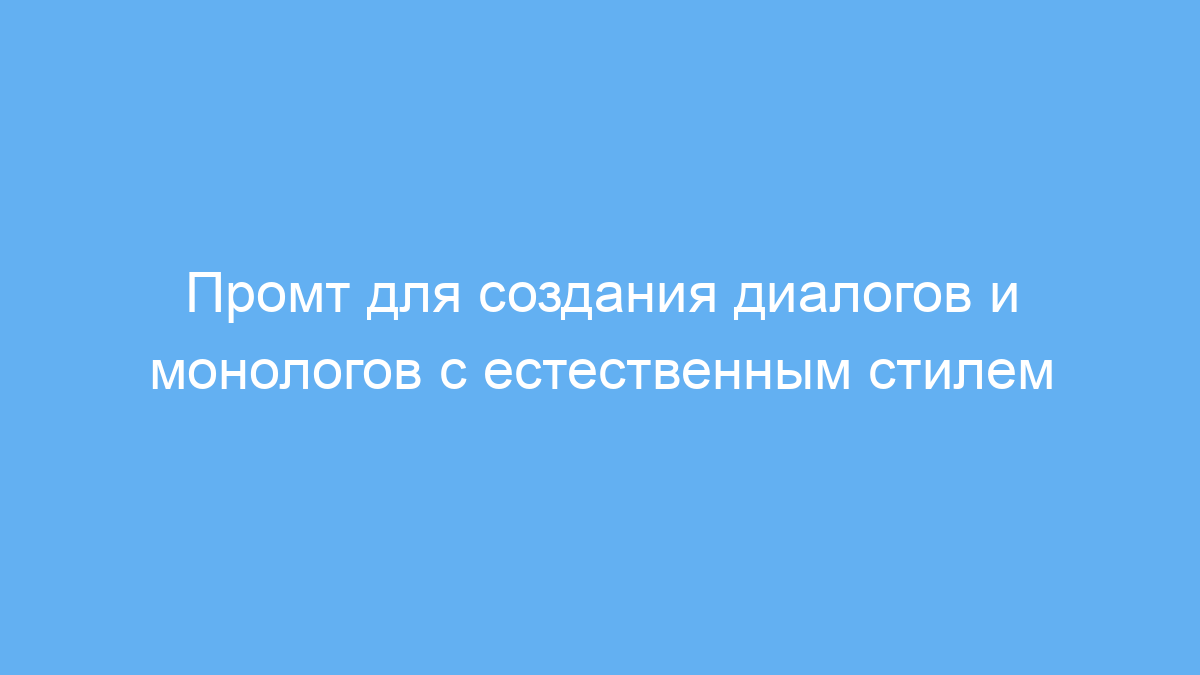 Этот промт помогает быстро создавать качественные диалоги и монологи с правильно расставленной пунктуацией и живым стилем. Он устранит трудности с построением естественного разговора или эмоционального монолога, что существенно облегчает работу над литературными или обучающими проектами.