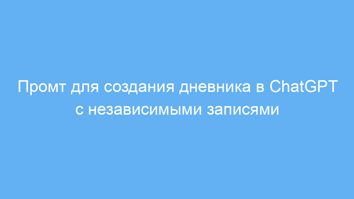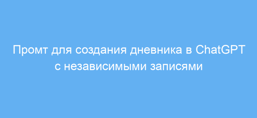 Этот промт сэкономит время и силы на написание интересных и разнообразных записей дневника от лица ChatGPT. Он подходит для творческих проектов, личного развития и развлечений, позволяя получить уникальные и независимые записи без сложных инструкций.