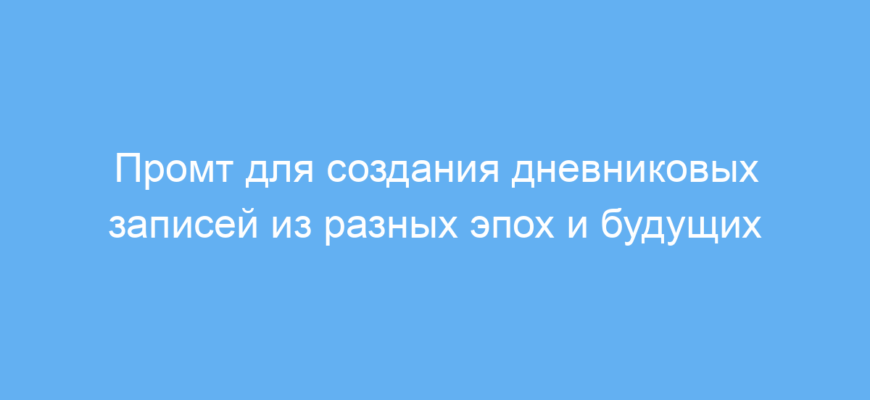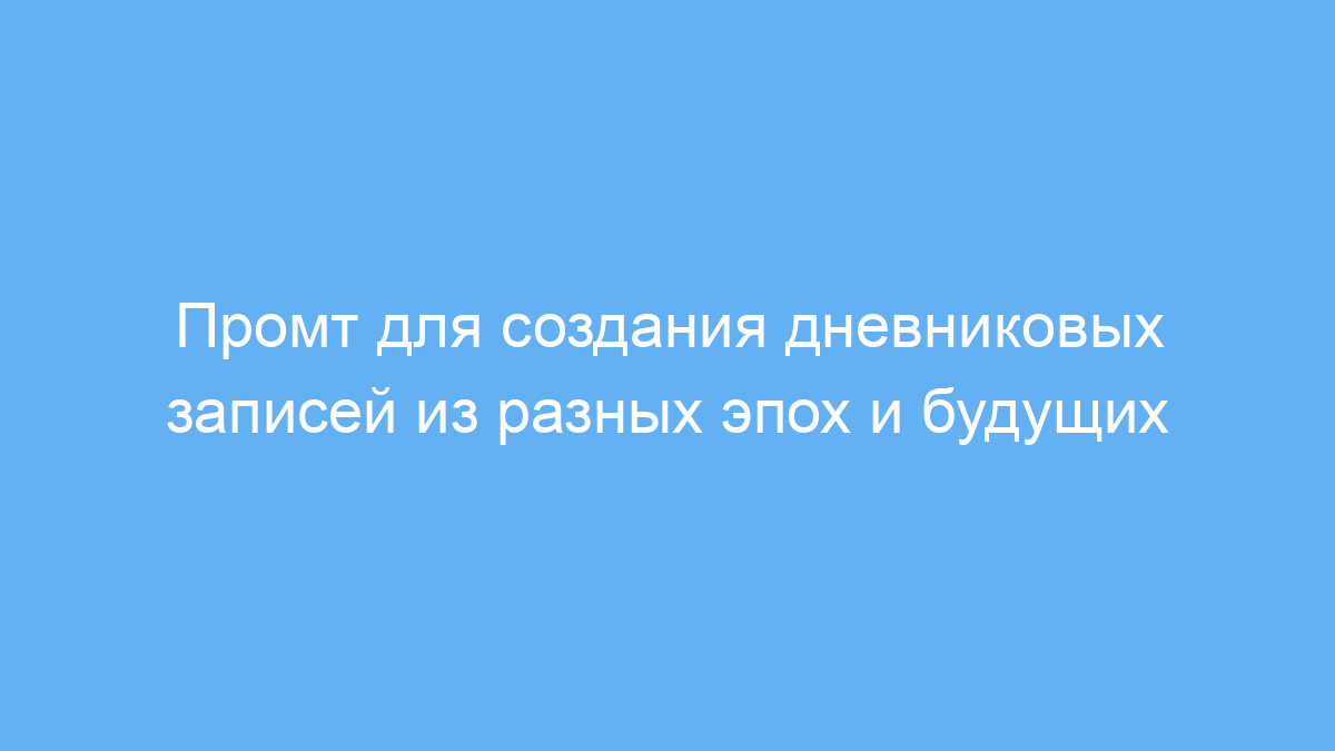 Этот промт предназначен для писателей, преподавателей, историков, сценаристов и всех, кто хочет быстро и достоверно получить дневниковые записи из разных исторических эпох или воображаемых будущих ситуаций. Он помогает создавать живые, личные тексты, передающие атмосферу времени, культуру и мышление обычных людей тех времён.
