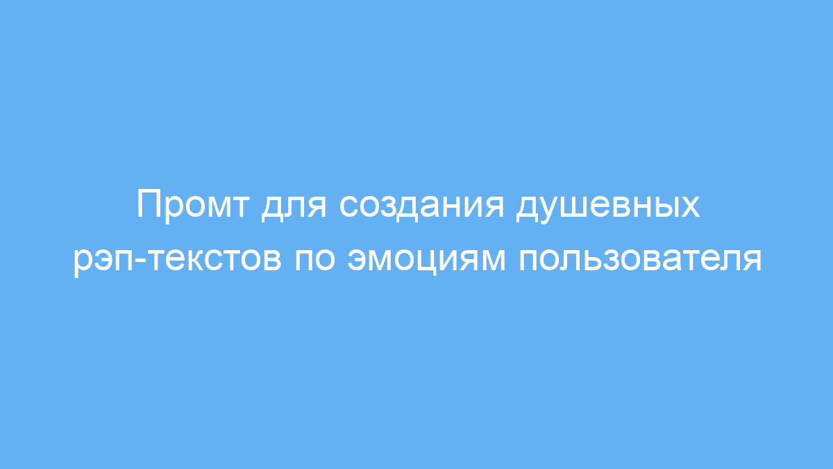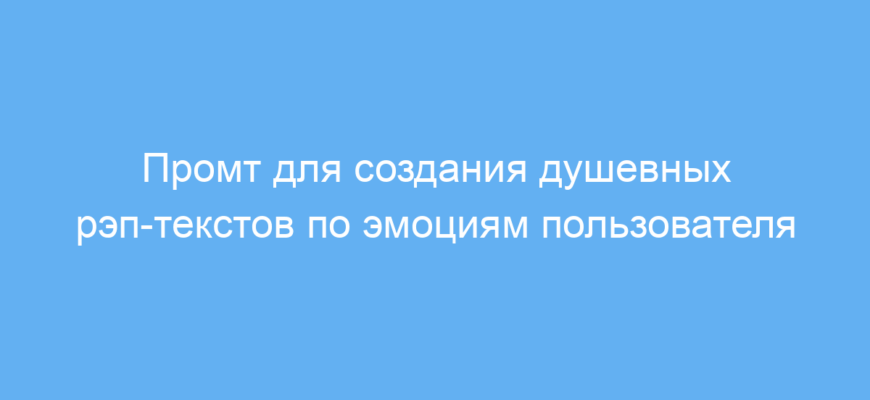 Этот промт предназначен для тех, кто хочет создавать искренние и глубокие рэп-тексты, отражающие реальные эмоции и переживания человека. Он будет полезен музыкантам, поэтам, копирайтерам и всем, кто работает с творческим контентом или хочет выразить чувства через рэп.