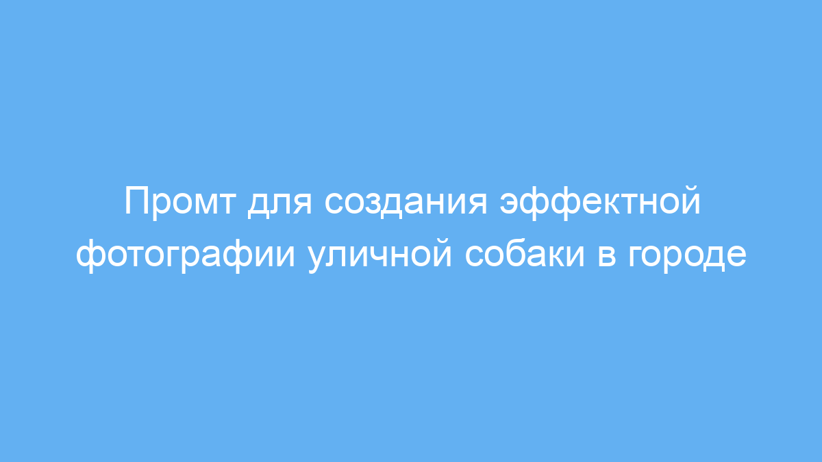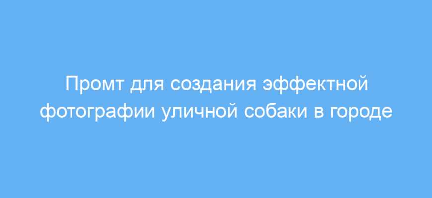 Данный промт предназначен для пользователей, которым нужно создать реалистичное, художественное изображение уличной собаки на фоне городской среды с помощью нейросетей. Он отлично подходит фотографам, дизайнерам, иллюстраторам и копирайтерам, заинтересованным в визуальном контенте с высокой детализацией и живой атмосферой.