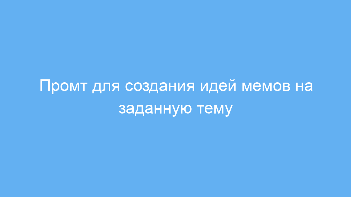 Этот промт предназначен для пользователей, которые хотят создавать мемы с помощью нейронных сетей. Если у вас есть исходное изображение или идея, и вы хотите получить свежие и оригинальные варианты для мемов на определённую тему, этот промт отлично подходит для этой задачи.
