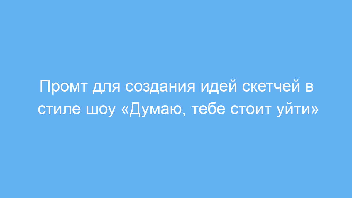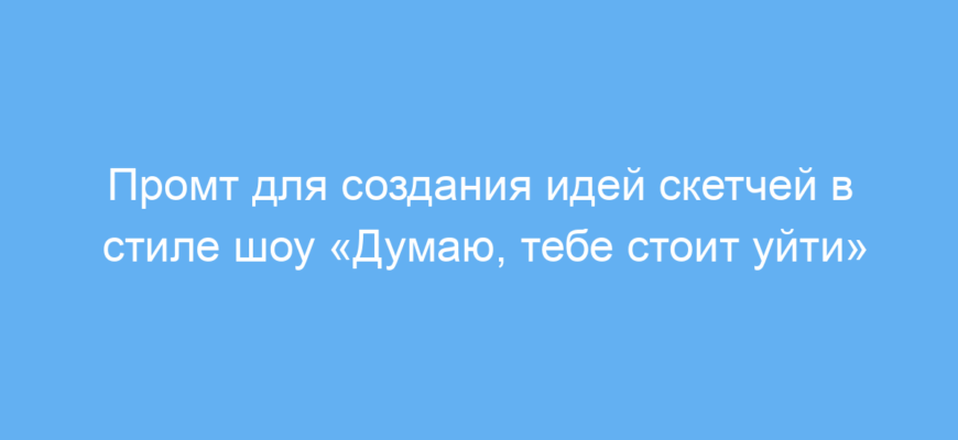 Этот промт предназначен для сценаристов, комедийных авторов и всех, кто хочет быстро получить свежие идеи для скетчей в стиле шоу Тим Робинсона «Думаю, тебе стоит уйти». Использование промта помогает сгенерировать абсурдные, эмоциональные и безумные сценарные задумки с элементами агрессивного юмора и взрослой тематики.