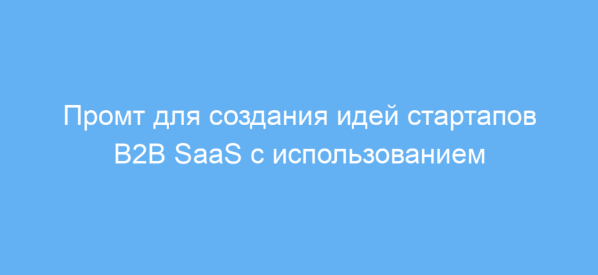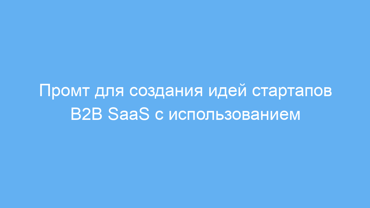Этот промт экономит время и силы по поиску уникальных B2B SaaS идей с применением ИИ. Он помогает получить фокусированные, инвест-привлекательные концепции с яркой миссией, которые можно быстро развивать или использовать для презентаций и планирования.