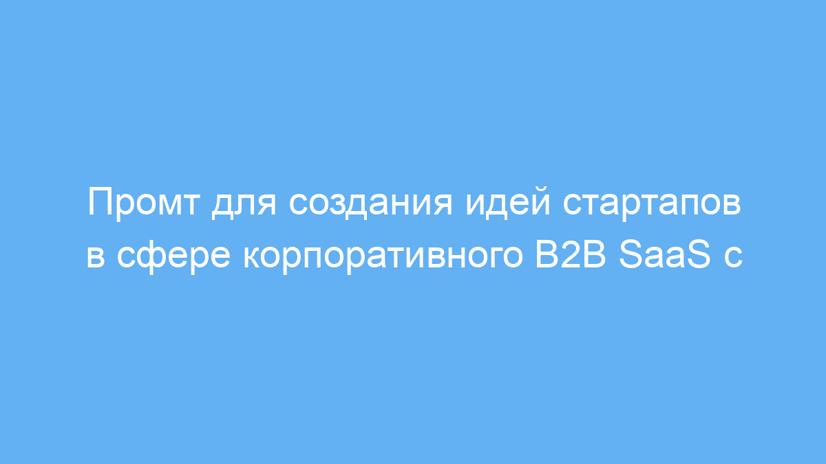 Этот промт предназначен для предпринимателей, стартаперов, инвесторов и маркетологов, которые хотят быстро получить свежие, интересные идеи для корпоративных B2B SaaS-проектов с элементами искусственного интеллекта. Использование таких идей помогает сэкономить время на генерацию концепций и получить варианты с сильной миссией, которые сразу привлекают внимание потенциальных инвесторов.