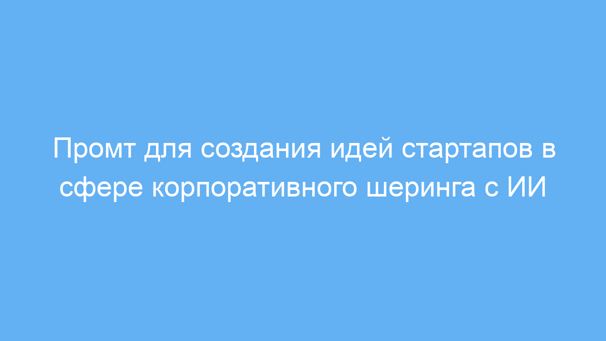 Первый пример показывает, как получить идеи стартапов в корпоративном шеринге с акцентом на экологию и устойчивое развитие. Это поможет разработать проекты, которые будут не только полезны бизнесу, но и выгодны для планеты.