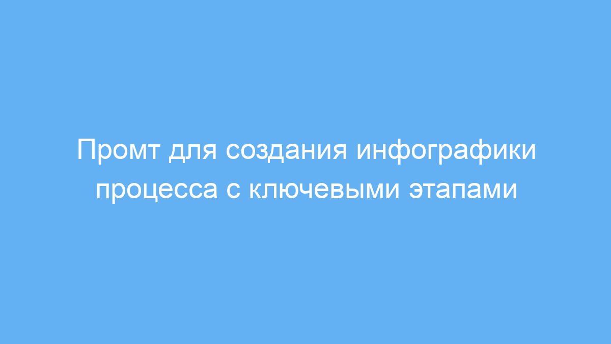 Этот промт предназначен для тех, кто хочет быстро и просто получить инфографику, которая наглядно показывает шаги какого-либо процесса. Его могут использовать маркетологи, преподаватели, дизайнеры и специалисты по визуализации данных. Показывая этапы и выделяя ключевые моменты, инфографика помогает лучше понять сложные процессы или презентации.