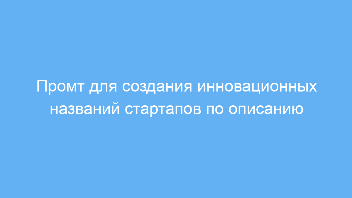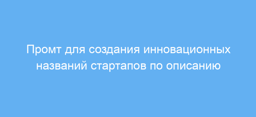Этот промт предназначен для предпринимателей, маркетологов, креативных команд и тех, кто запускает новые стартапы. Его задача — помочь быстро и эффективно придумать инновационные и профессиональные названия для стартапов на основе их описаний.