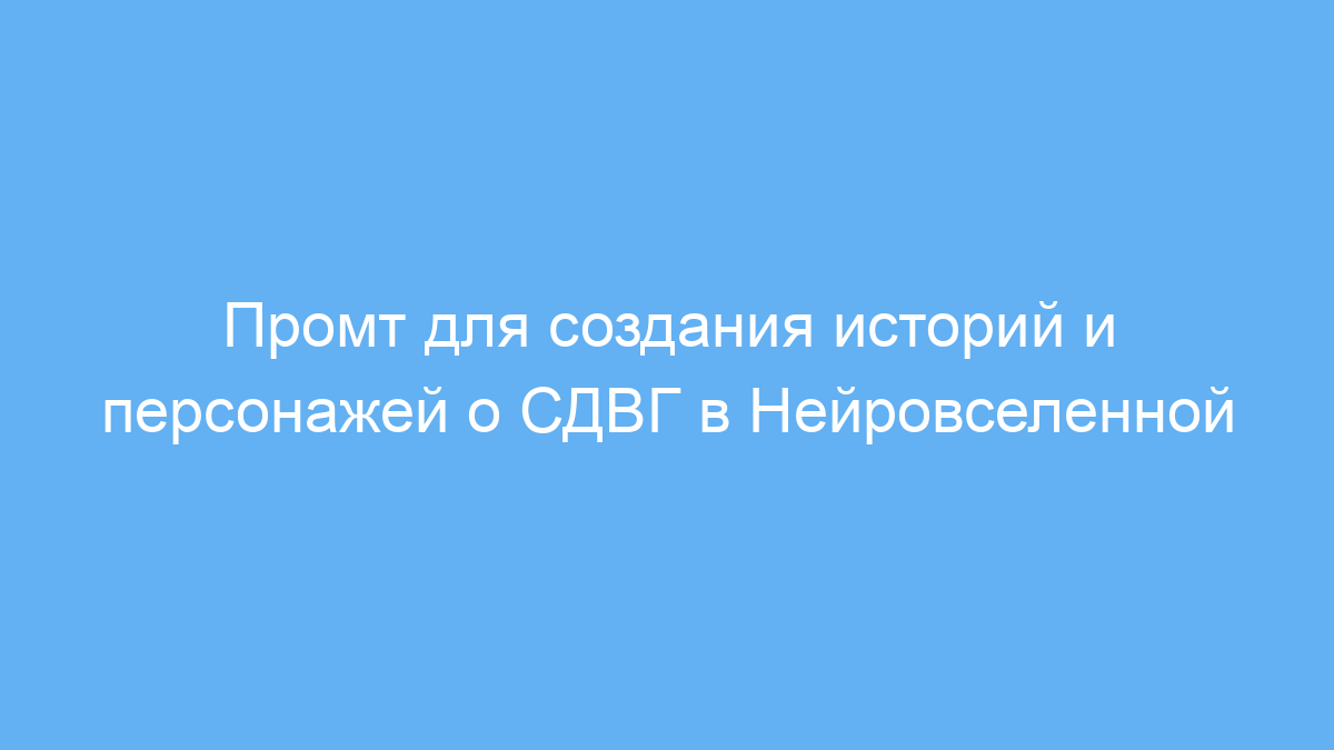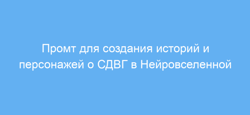 Этот промт предназначен для писателей, сценаристов, разработчиков игр и создателей контента, которые хотят глубже исследовать внутренний мир человека с синдромом дефицита внимания и гиперактивности (СДВГ).