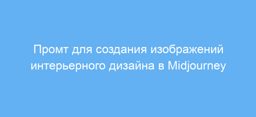 Работает промт по простому шаблону, в который подставляются стиль интерьера, тип комнаты и ключевые элементы. Это позволяет нейросети понять, какое именно изображение нужно сгенерировать, а параметры —ar 16:9 и —v 5 задают формат и качество результата.