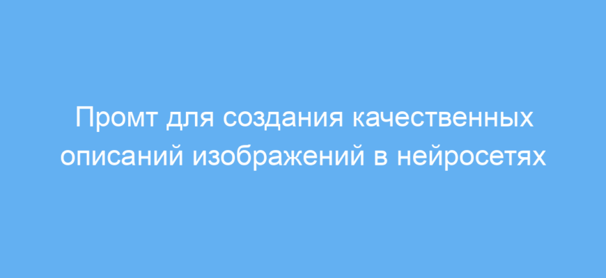 Данный промт значительно упрощает процесс создания эффективных и структурированных описаний для генераторов изображений. Он позволяет оптимизировать работу с нейросетями, повышая качество полученных картин и сокращая время на ручную подготовку текста. Такой подход полезен как новичкам, так и опытным пользователям, стремящимся к профессиональным результатам.