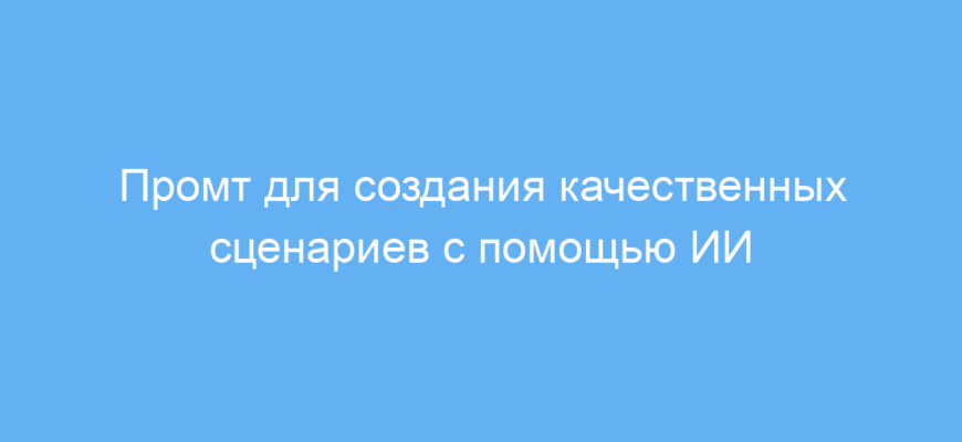 Этот промт упрощает создание качественных сценариев под любые задачи благодаря точному заданию параметров. Он экономит время, повышает качество текста и позволяет получить готовые к использованию материалы без долгих исправлений.