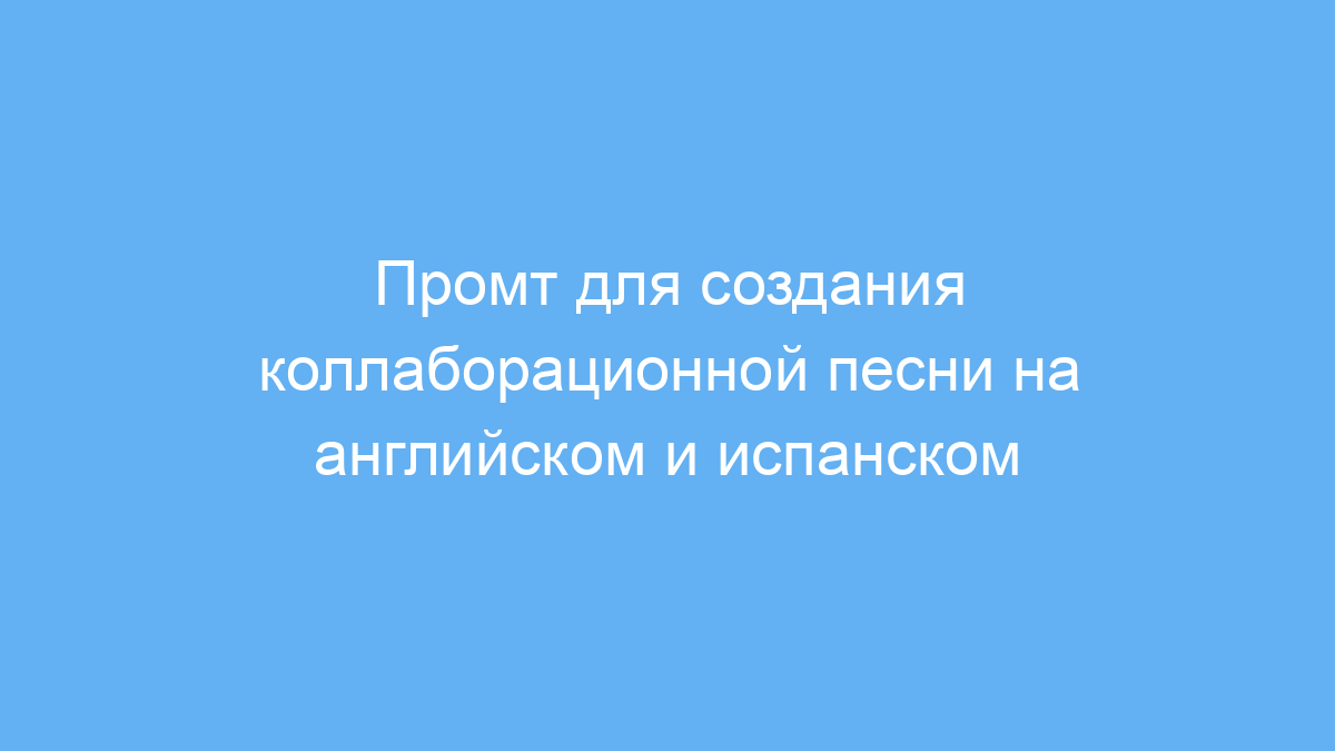 Промт работает, задавая нейросети конкретную творческую задачу — написать тексты и описать музыкальный стиль двух артистов, объединённых в песне. При этом учёт языков и музыкальной атмосферы позволяет получить цельный и живой результат, который можно использовать как основу для создания реального трека.