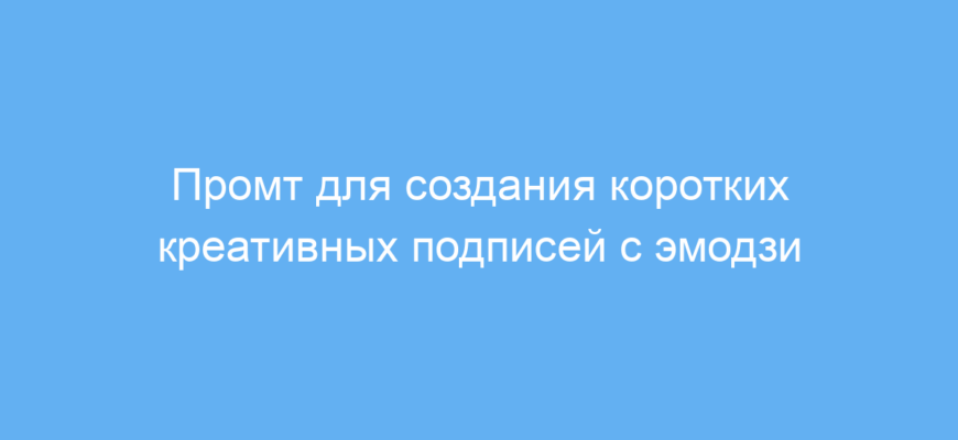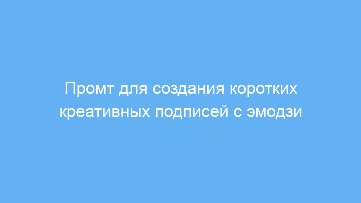 Данный промт позволяет быстро и легко создавать короткие, яркие и запоминающиеся подписи с юмором и эмодзи, что ускоряет подготовку контента и повышает его привлекательность для аудитории.