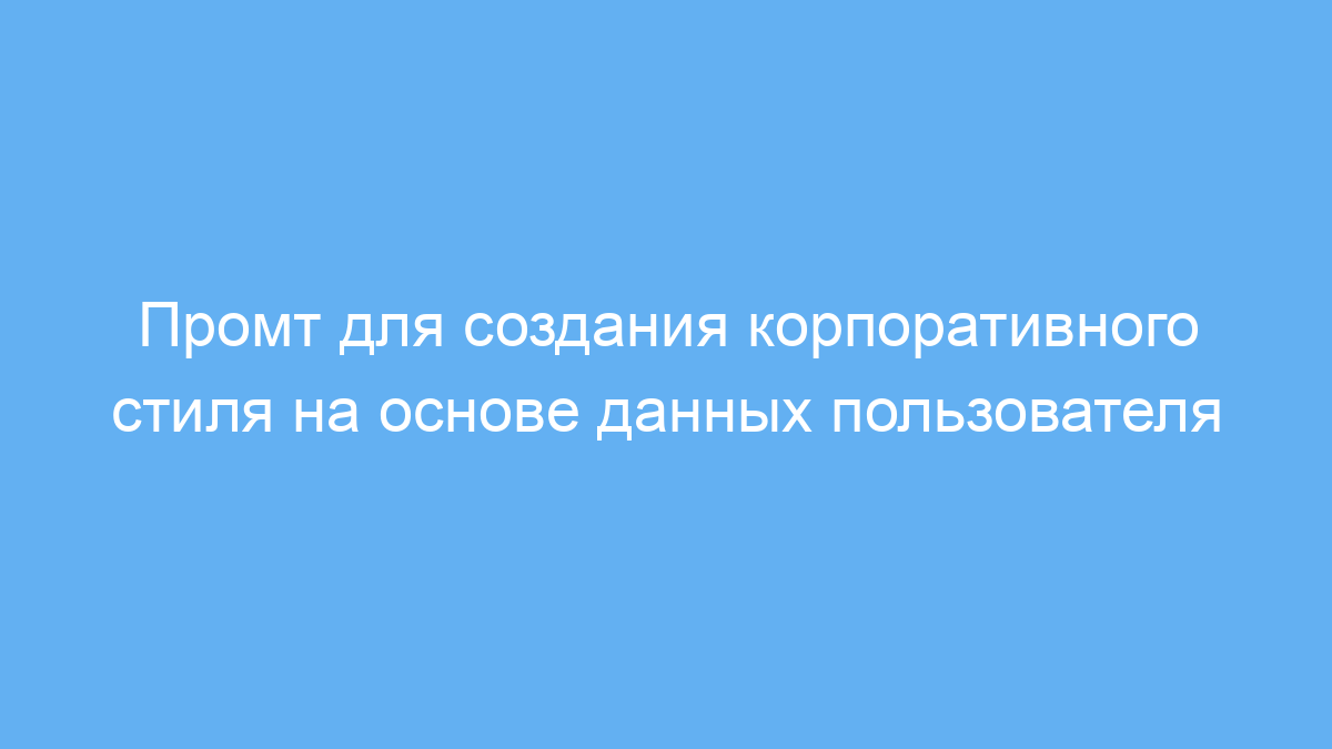 Промт помогает значительно упростить процесс создания корпоративного стиля, особенно если нужно быстро получить качественный базовый образ компании. Он экономит время на составление вступительных текстов и структурирование данных, а также помогает получить идеи для дизайна и коммуникаций, адаптированные под конкретный бизнес. Используя этот промт, вы получаете удобный инструмент, который сделает бренд более целостным и узнаваемым.