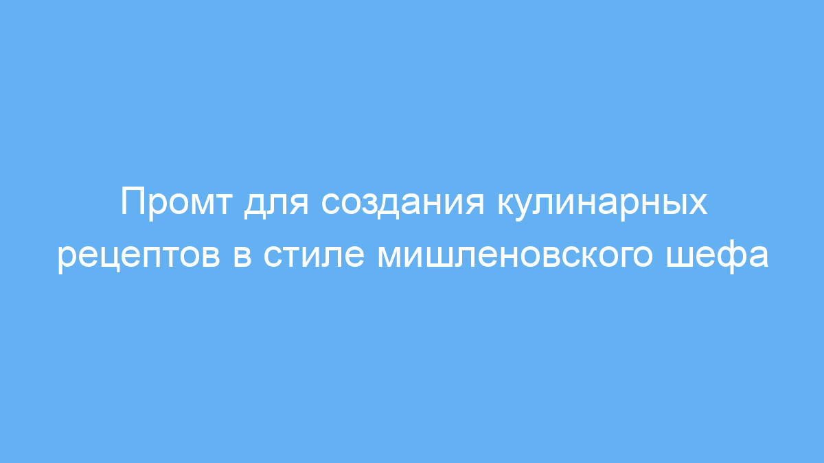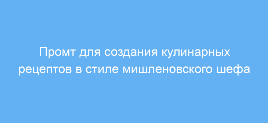 Этот промт создан для тех, кто хочет генерировать качественные, детальные и разнообразные рецепты в стиле шеф-повара с мишленовской звездой. Он полезен блогерам, авторам кулинарных книг, рестораторам и любителям изысканной кухни, которые нуждаются в вдохновении и идеях для авторских блюд.