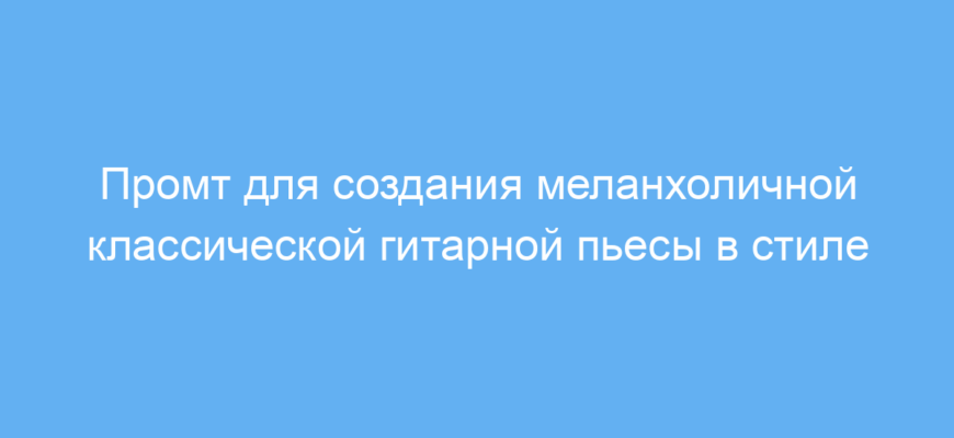 Использование данного промта позволяет быстро получить качественную музыкальную композицию с детализацией и стилистическими акцентами, подходящую для различных целей — от творчества до обучения. Это экономит время, облегчает поиск вдохновения и помогает в освоении сложных техник игры на гитаре.