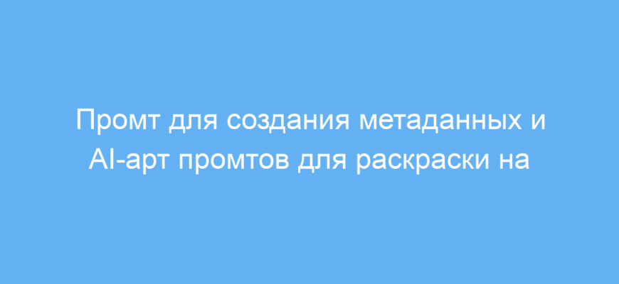 Этот промт позволяет легко и быстро генерировать профессионально звучащие метаданные для раскрасок разных тематик. Он помогает экономить время при подготовке книги к публикации на Amazon KDP и одновременно создает качественные AI-арт промты для создания иллюстраций. Использование такого комплексного подхода способствует повышению привлекательности и эффективности продукта.