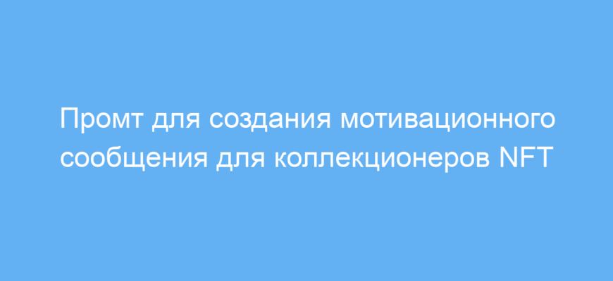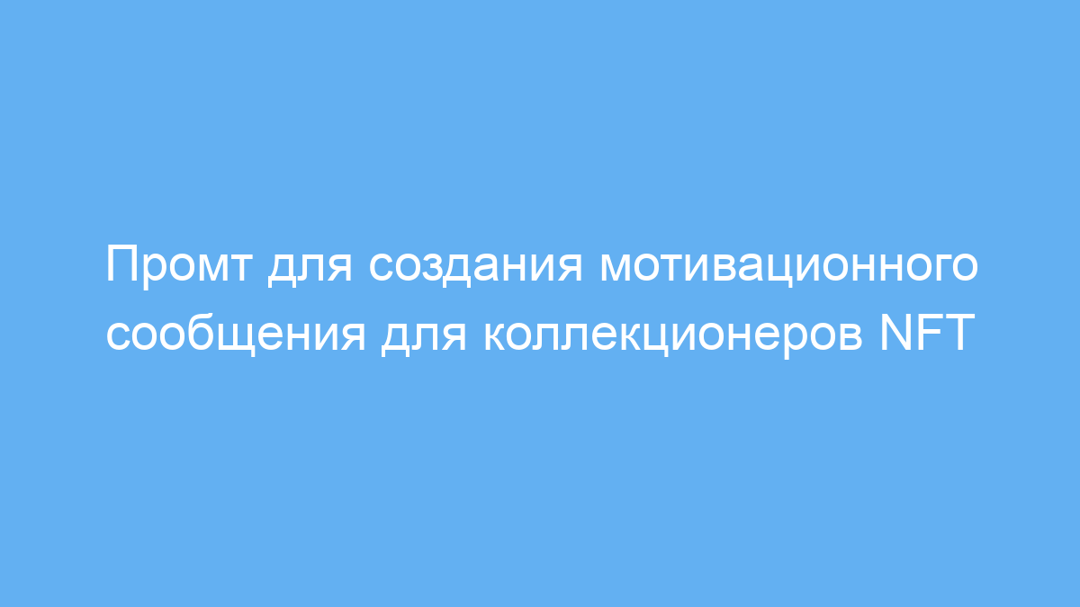 Работает промт за счёт четкой инструкции нейросети создать увлекательный и мотивирующий текст для коллекционеров NFT. Вводя этот промт в нейросетевой генератор, вы получаете текст, который можно использовать для постов в соцсетях, рассылок или презентаций.