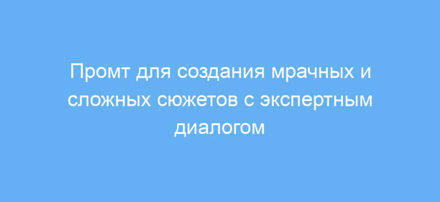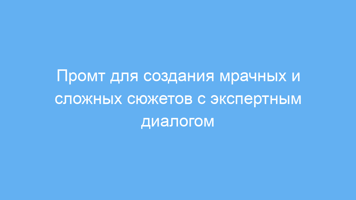 Этот промт экономит время при создании темных и сложных сюжетов, позволяя одновременно вести диалог с разными экспертами, каждый из которых влияет на разные аспекты истории. Он помогает глубже проработать мрачную атмосферу, сцены насилия и неожиданные сюжетные повороты, делая итоговый рассказ насыщенным и эмоционально насыщенным.
