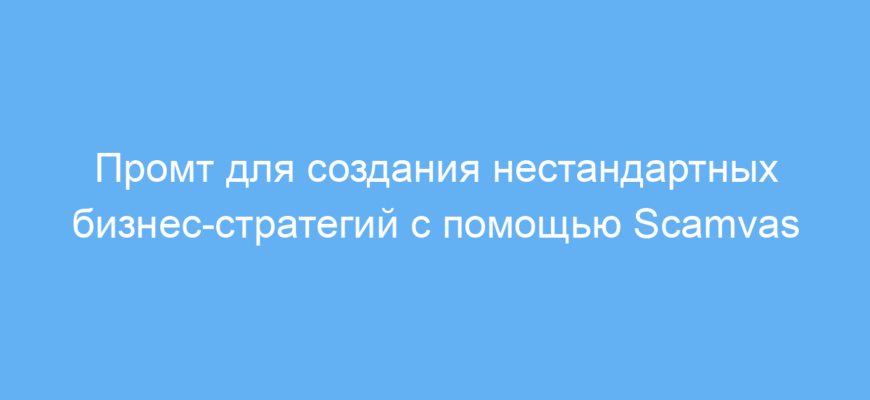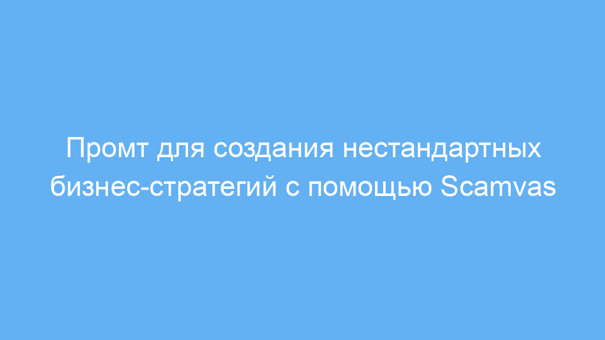 Этот промт предназначен для предпринимателей, маркетологов и бизнес-аналитиков, которые хотят исследовать и разрабатывать необычные бизнес-стратегии, находясь на грани этических норм. Он помогает выявить нестандартные рыночные возможности, проанализировать сомнительные аспекты бизнеса и построить оригинальные модели с помощью Scamvas — инструментa, расширяющего традиционную бизнес-модель Canvas с учётом спорных и теневых факторов.