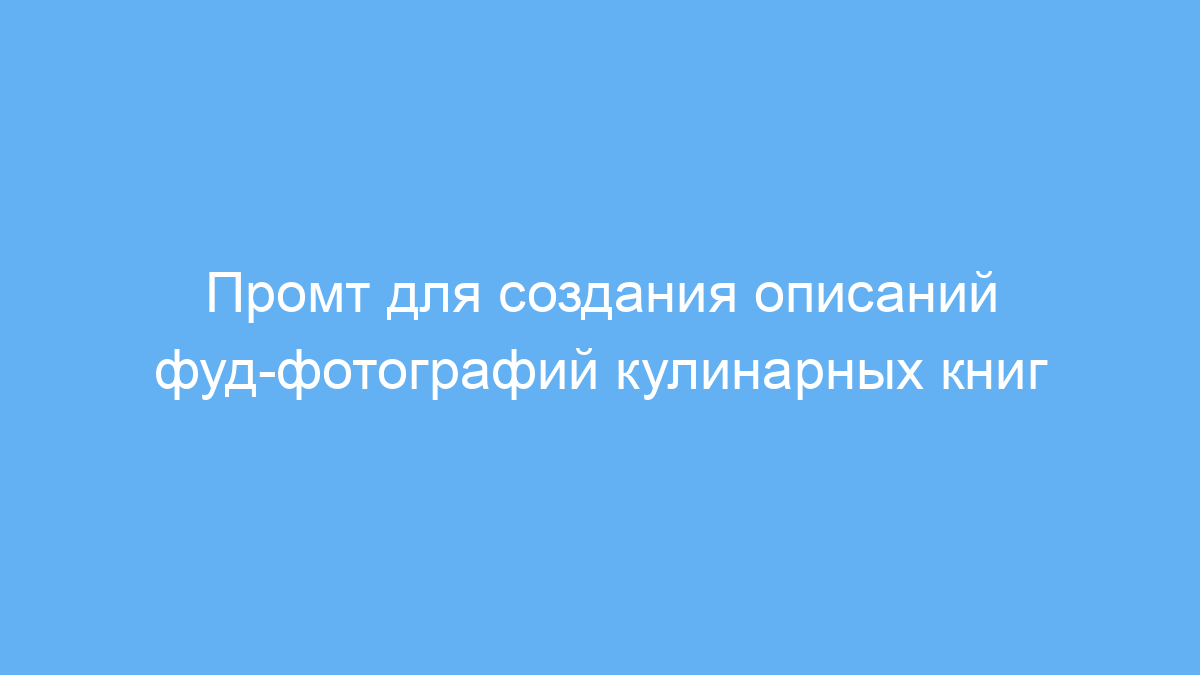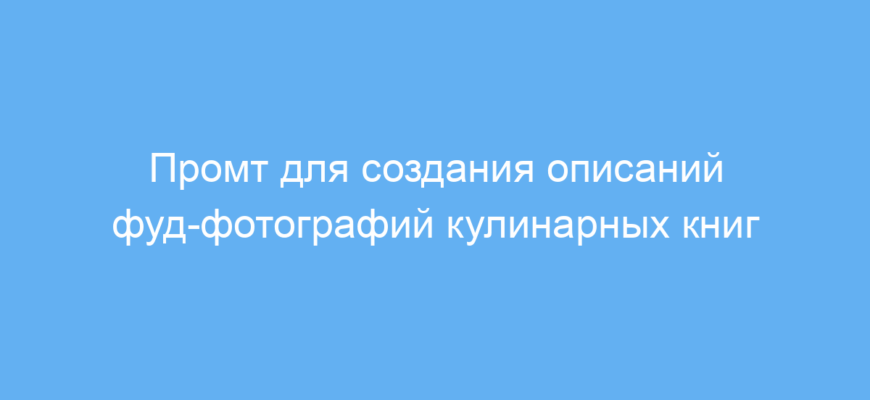 Этот промт значительно облегчает создание качественного описания блюда для фуд-фотографов и дизайнеров, экономит время при подготовке обложек и рекламных материалов. Он помогает представить конечный визуальный образ блюда в краткой, понятной форме, благодаря чему нейросеть генерирует именно тот стиль и атмосферу, которые необходимы для профессиональной подачи.