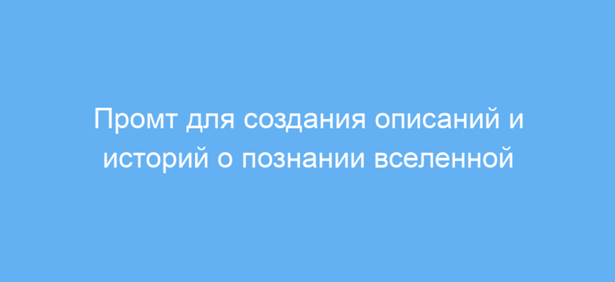 Этот промт предназначен для авторов, исследователей и творческих людей, которым нужно легко и красиво создавать тексты, связанные с познанием, исследованиями и космосом. Он поможет эффективно превращать абстрактные концепции о знаниях и вселенной в интересные описания, рассказы или идеи.