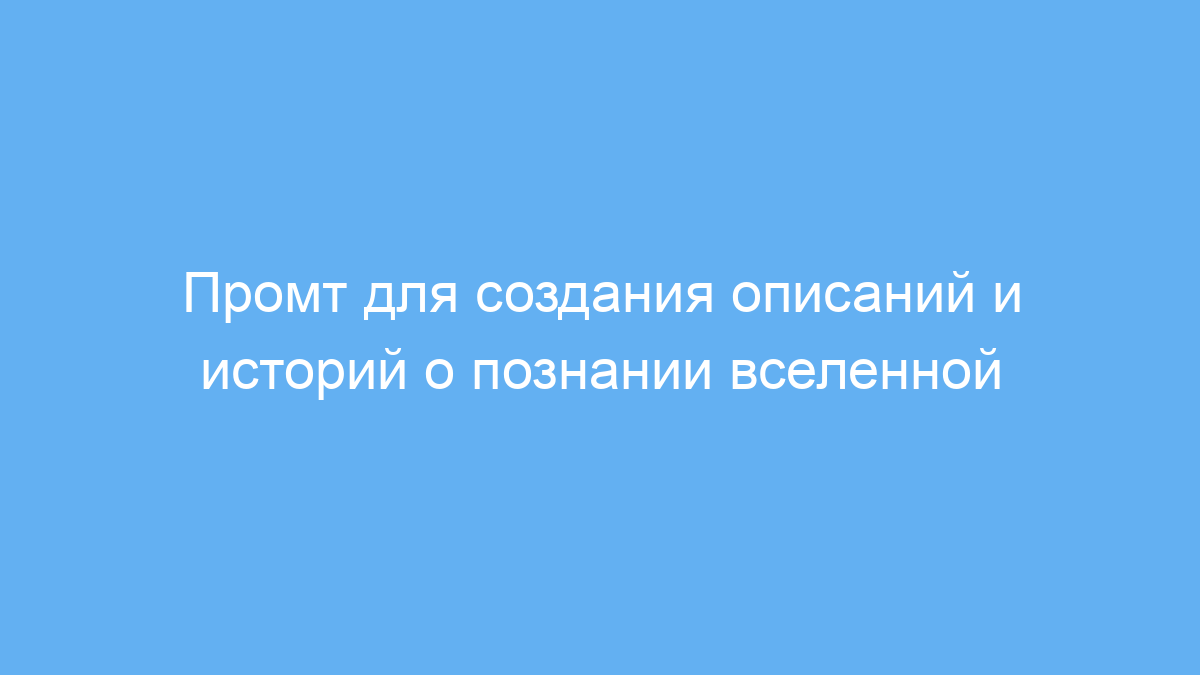 Этот промт помогает быстро генерировать насыщенные и яркие тексты о познании и исследованиях вселенной. Он упрощает процесс получения креативных идей и структурированных описаний, экономя время на поиске вдохновения и формулировке образов.