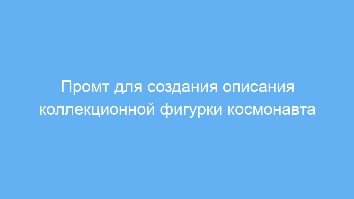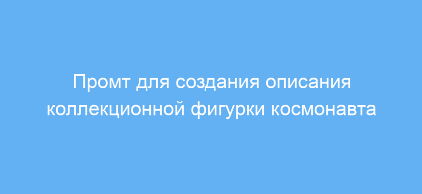 Используя этот промт, вы существенно экономите время на создании качественных и стильных описаний для коллекционных фигурок космонавтов. Промт помогает сделать описание визуально привлекательным и профессиональным, что особенно важно для продаж и презентаций.