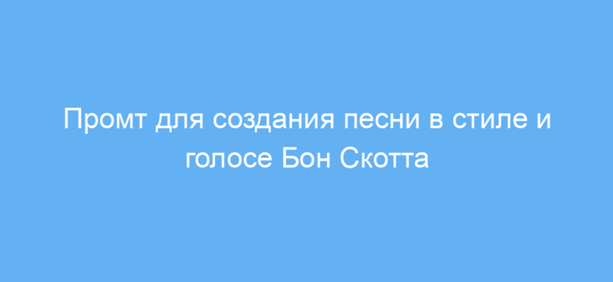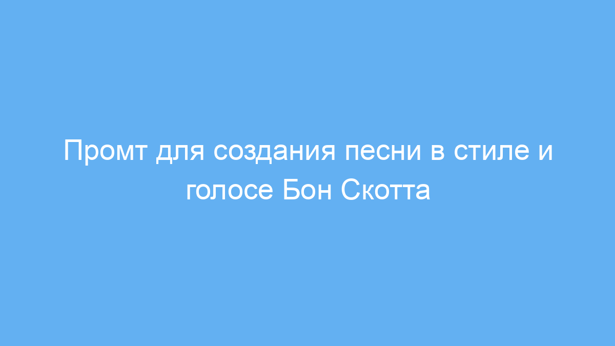 Этот промт предназначен для тех, кто хочет быстро и просто создать песню, стилизованную под знаменитого рок-певца Бон Скотта. Он будет полезен музыкантам, копирайтерам, фанатам рок-музыки и всем, кому нужно вдохновение или готовый текст в особом стиле.