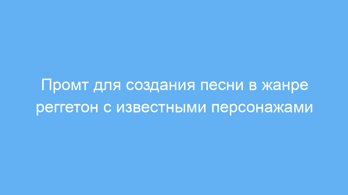 Используя этот промт, вы быстро получите текст песни в жанре реггетон с уникальным составом исполнителей. Это помогает сэкономить время на генерацию идей и вдохновиться, особенно если нужно сочетать неожиданных персонажей.