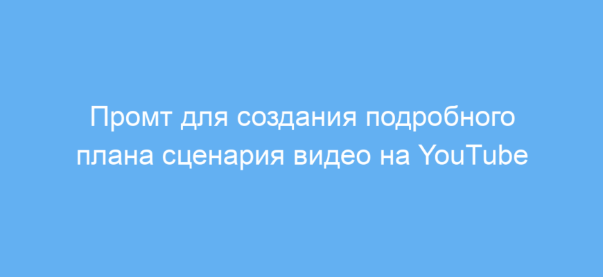 Этот промт значительно упрощает создание грамотных и привлекательных сценариев для видео на YouTube. Он помогает не пропустить важные детали и строить контент, который будет интересен аудитории и полезен автору.