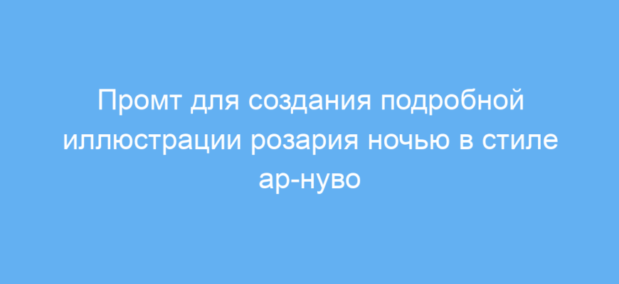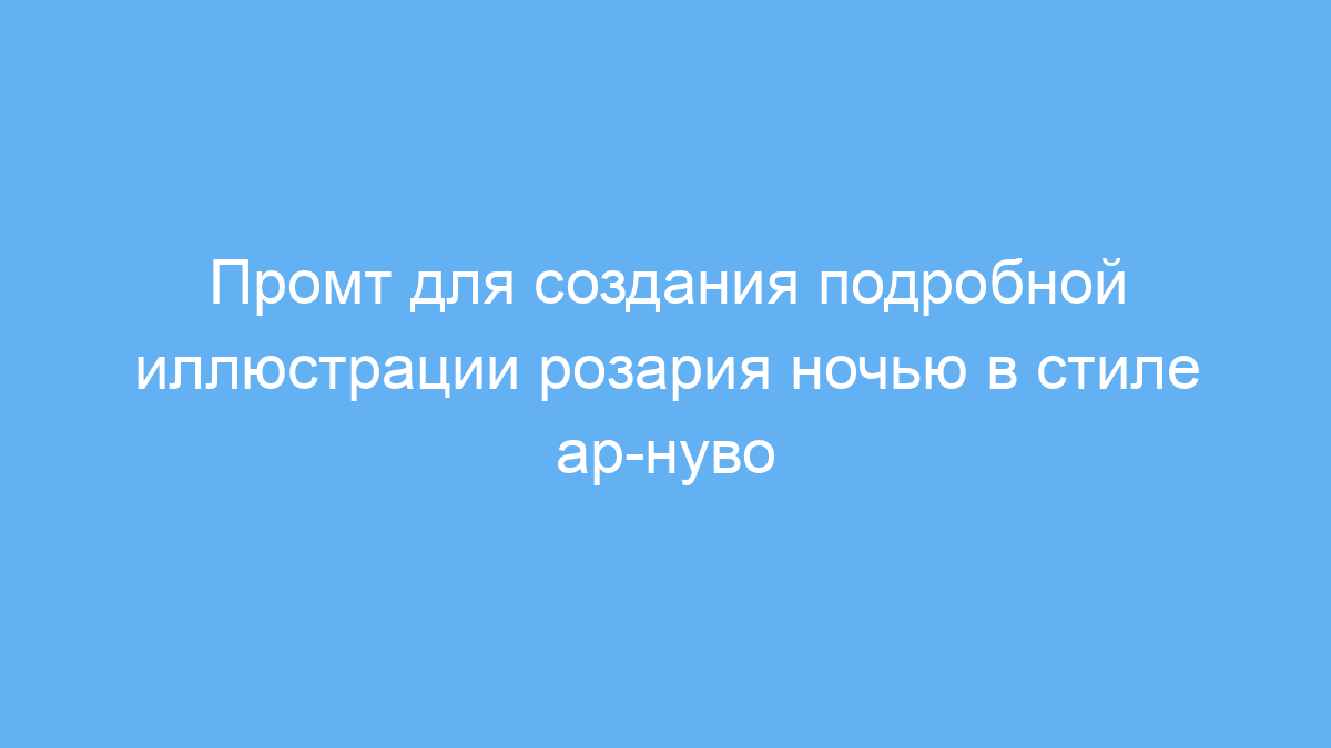 Этот промт помогает быстро и точно создавать красивые, стилизованные иллюстрации розария в ночной атмосфере и стиле ар-нуво с эффектом маркеров Copic. Он экономит время при работе с нейросетями и снижает ошибки интерпретации, давая качественный исходный материал для творчества или коммерческих проектов.