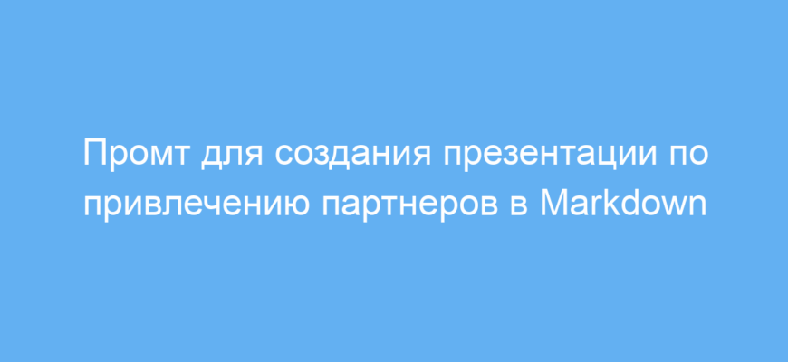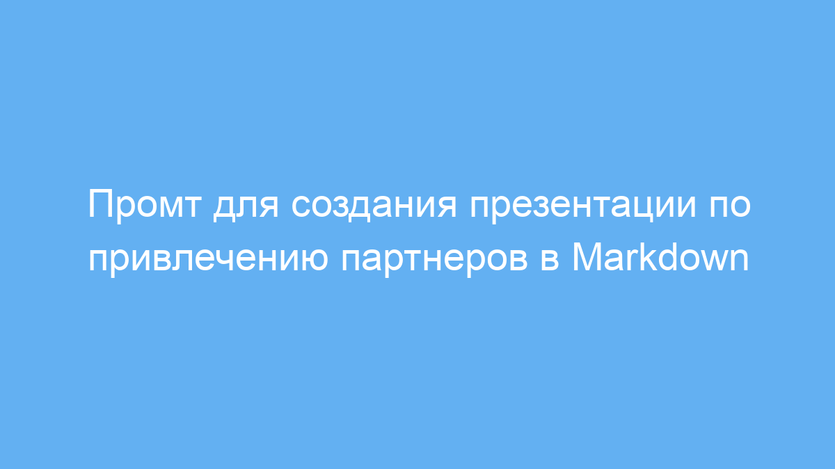 Данный промт значительно упрощает процесс подготовки презентаций по привлечению партнеров, формируя чёткую структуру и релевантные идеи на основе анализа рынка и инновационных технологий. Это экономит время и помогает быстро получить готовый материал для бизнес-коммуникаций.