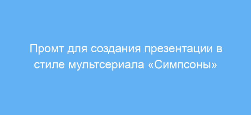 Этот промт предназначен для тех, кто хочет оформить презентацию в оригинальном и узнаваемом стиле мультсериала «Симпсоны». Он особенно полезен для дизайнеров, преподавателей, маркетологов и студентов, которым нужно быстро и креативно выделить информацию, добавив юмор и сатиру в подачу материала.