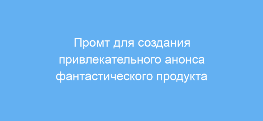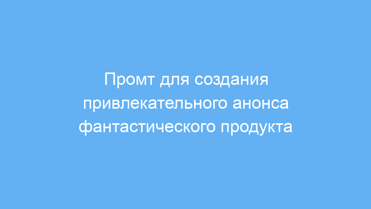 Промт позволяет быстро получить креативные, юмористичные и структурированные анонсы фантастических продуктов. Это экономит время на придумывание концепций и помогает создавать тексты, которые легко заинтересуют аудиторию и сделают продукт «желанным». В итоге вы получаете качественный маркетинговый материал без долгих мозговых штурмов.