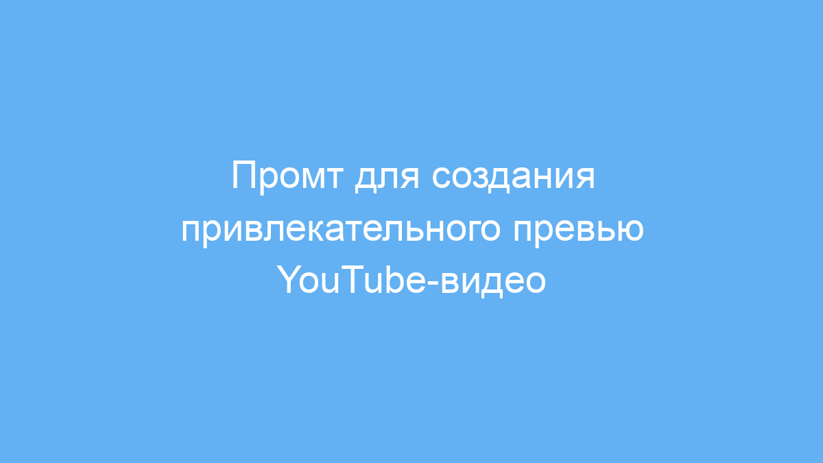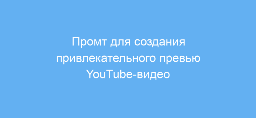 Этот промт существенно экономит время и силы при создании рекламных и информационных превью для YouTube-видео. Он помогает структурированно собрать все важные детали, чтобы получить максимально точный и привлекательный дизайн без лишних правок. Использование промта повышает качество превью и помогает увеличить число кликов и просмотров видео.