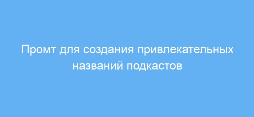 Для эффективного использования промта укажите конкретную тему подкаста и приблизительную длительность в минутах. Например, «15 минут», «30 минут» и так далее. Это поможет нейросети лучше ориентироваться в формате и выдавать более релевантные названия.