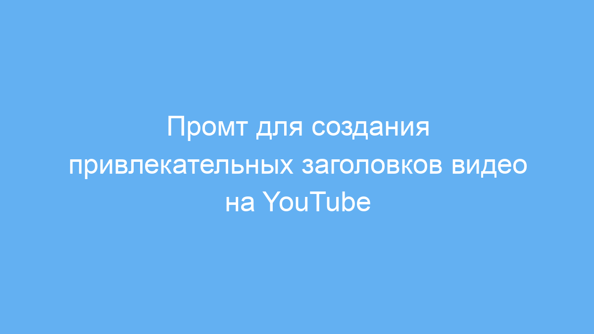Этот промт создан для ютуберов, видеомаркетологов и создателей контента, которые хотят быстро и эффективно создавать сильные заголовки для своих видео. Заголовок — это первое, что видит зритель, и от него зависит, задержится ли человек и посмотрит видео дальше. Часто возникает проблема, что заголовки либо слишком общие, либо выглядят искусственно, и зрители не заинтересованы.