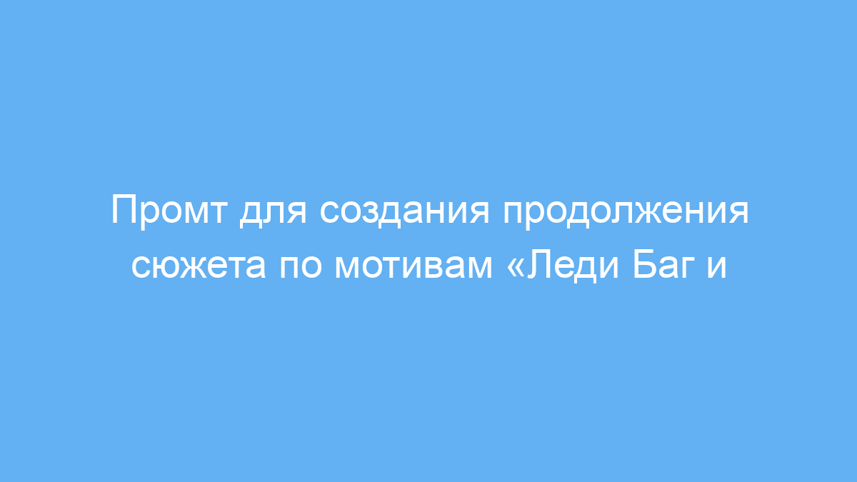 Этот промт предназначен для сценаристов, писателей, блогеров и творческих людей, которые хотят быстро придумать продолжение или развитие истории, основанной на популярном мультфильме «Леди Баг и Супер-Кот». Он помогает обойти творческий ступор и получить интересные сюжетные идеи, а также расширить вселенную уже знакомых персонажей.