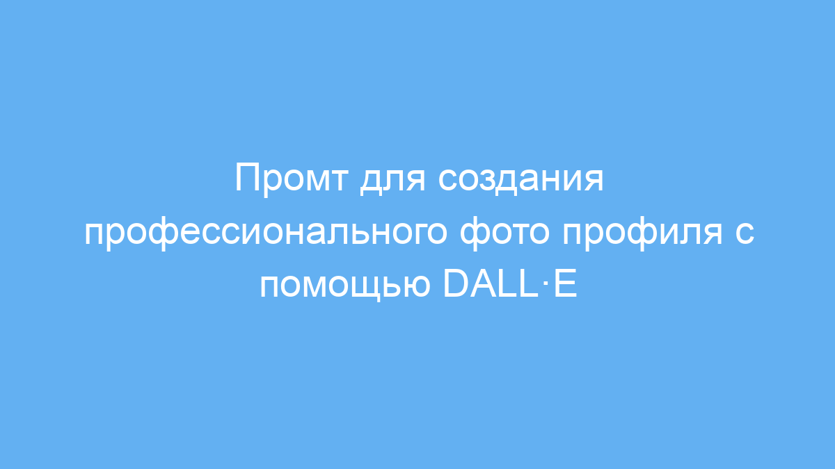 Данный промт помогает быстро и просто создать профессиональное фото профиля с использованием возможностей DALL·E. Он освобождает пользователя от необходимости разбираться в технических деталях создания изображений и помогает экономить время и ресурсы при подготовке качественного визуала для работы или социальных сетей.