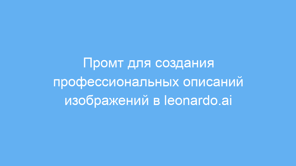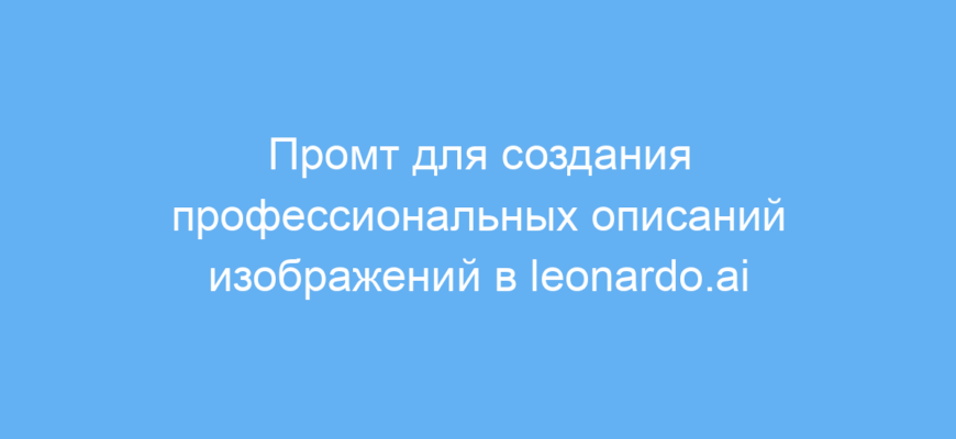 Этот промт значительно упрощает процесс создания точных и выразительных описаний для генерации изображений. Он помогает получить качественные и детализированные варианты, экономит время на доработку и повышает результативность работы с нейросетями на платформе leonardo.ai.