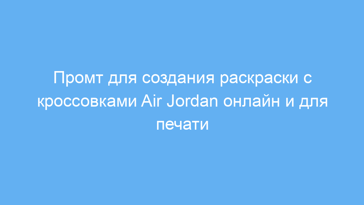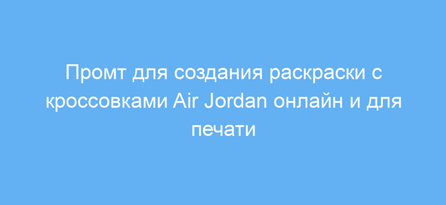 Использование такого промта позволяет быстро создать структурированный, информативный и привлекательный материал — раскраску с любимыми кроссовками Air Jordan. Это экономит время на поиск и оформление контента и обеспечивает качественный продукт для обучения, развлечения или промо.