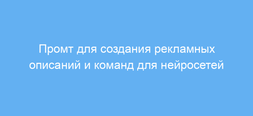 Использование этого промта позволяет быстро и легко создавать привлекательные рекламные тексты и корректные команды для визуализации в нейросетях. Это существенно экономит время и силы, упрощая процесс создания уникального контента для презентаций, маркетинга и творчества.