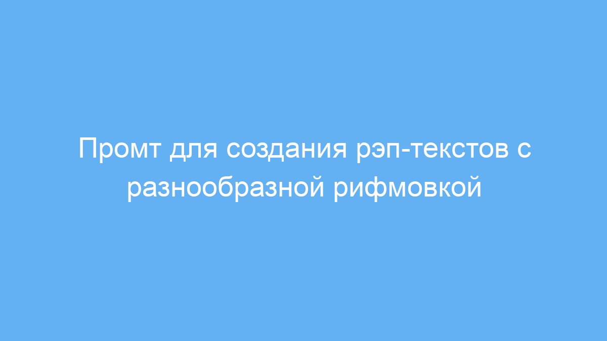 Этот промт предназначен для всех, кто хочет быстро и качественно сгенерировать рэп-тексты с оригинальными рифмовками и выразительными образами. Он полезен рэп-исполнителям, копирайтерам, авторам песен и всем, кто изучает искусство рифмовки.