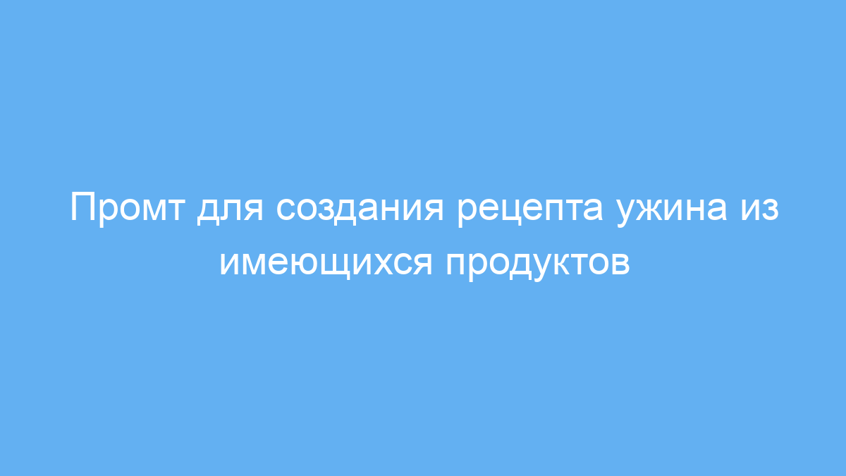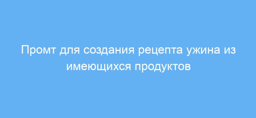 Этот промт подойдет тем, кто хочет быстро получить идеи для приготовления ужина на основе уже имеющихся ингредиентов. Он помогает решить проблему с выбором рецепта, когда не хочется идти в магазин или тратить много времени на поиски подходящего блюда.
