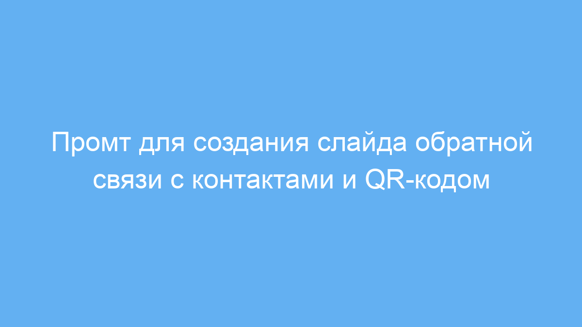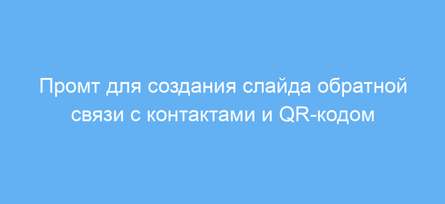 Этот промт позволяет быстро получить удобный и современный слайд обратной связи, который помогает собирать контакты и направлять пользователей на важные ресурсы через QR-код. Он экономит время на дизайн и обеспечивает высокую читаемость независимо от платформы.