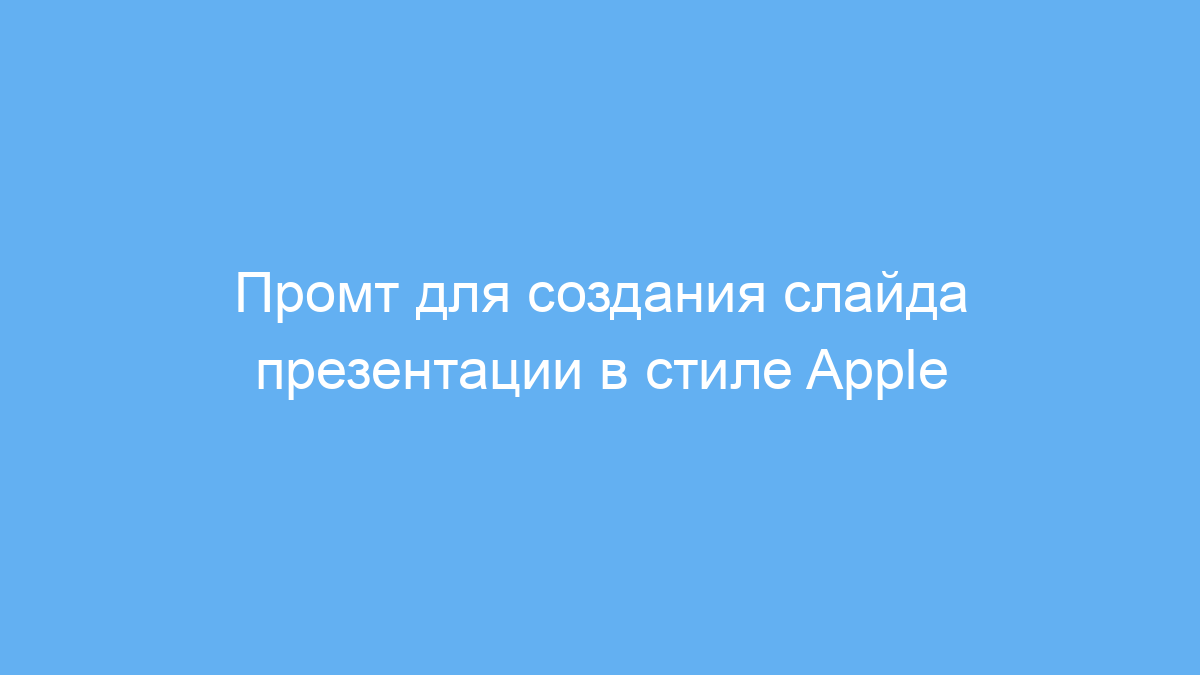 Данный промт значительно ускоряет создание стильных и лаконичных слайдов в фирменном стиле Apple. Он помогает сохранить минимализм и читабельность, делая презентации более профессиональными и визуально приятными без лишних затрат времени на дизайн.