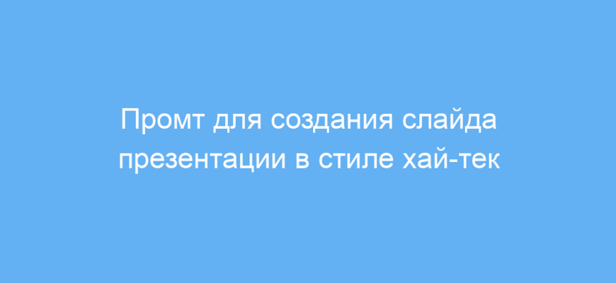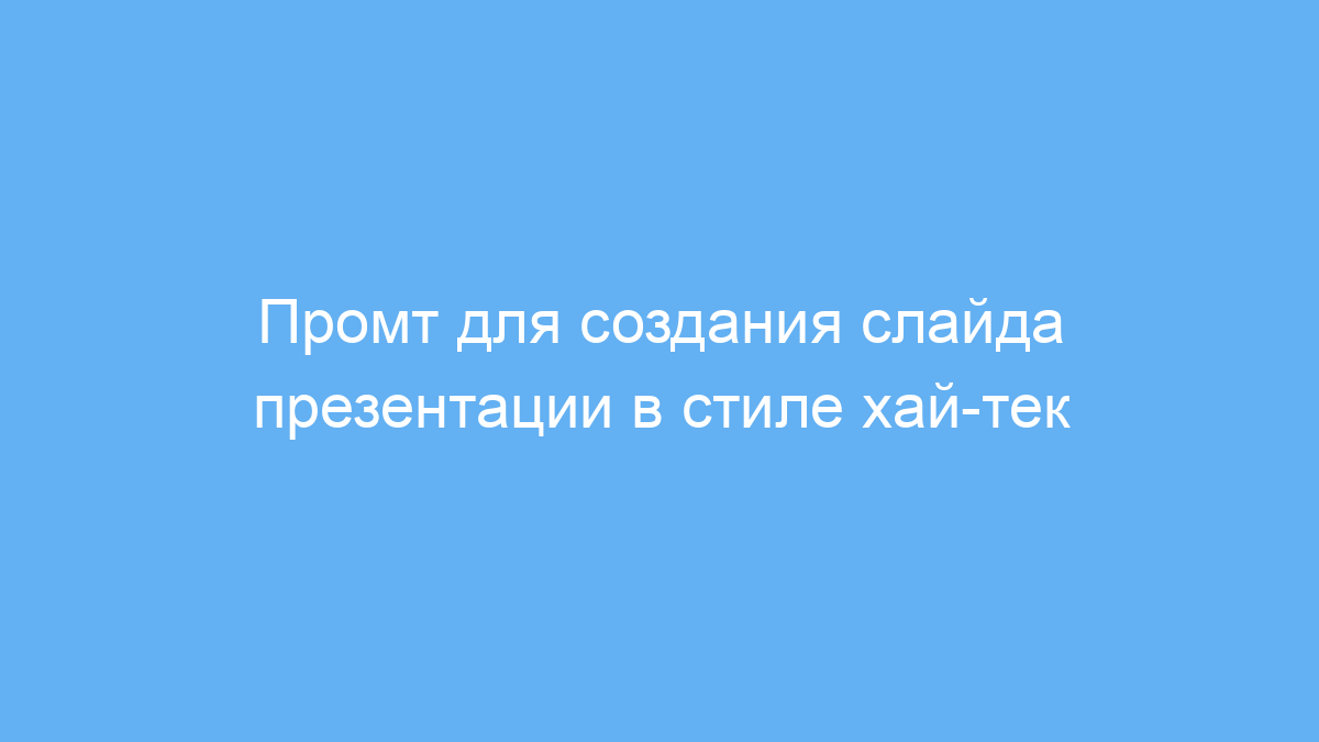 Промт значительно сокращает время подготовки презентаций, помогая создавать профессионально оформленные слайды в стиле хай-тек без навыков дизайна. Он облегчает визуальную подачу информации, делая ваши презентации более современными и запоминающимися.