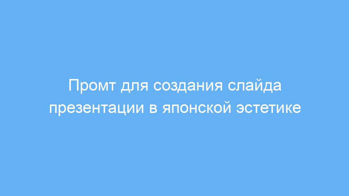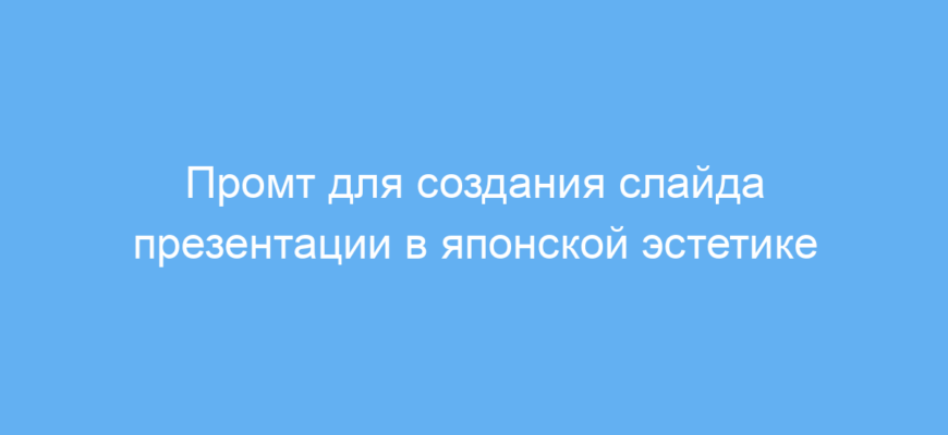 Работает промт просто: вы указываете тему слайда и, при необходимости, конкретный элемент, на который следует сделать акцент. Нейросеть сгенерирует предложение или описание слайда со всеми нужными деталями, отражающими японский стиль и минимализм. Это помогает создавать презентации с нужным настроением и визуальной гармонией без глубоких знаний в дизайне.